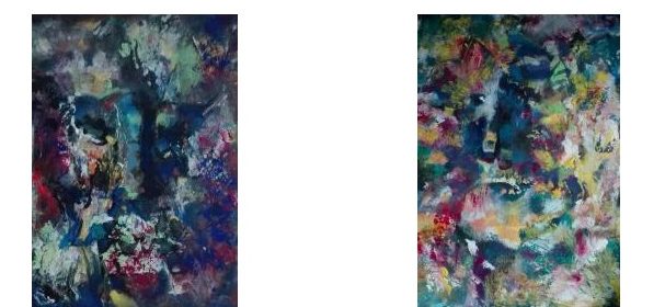 A questi ritratti si copulano in forme, dove un occhio si affaccia su una materia informe; ossessione e stato di allucinazione, dove segni di volti, di occhi, di nasi si presentano rompendo un muro di colori!