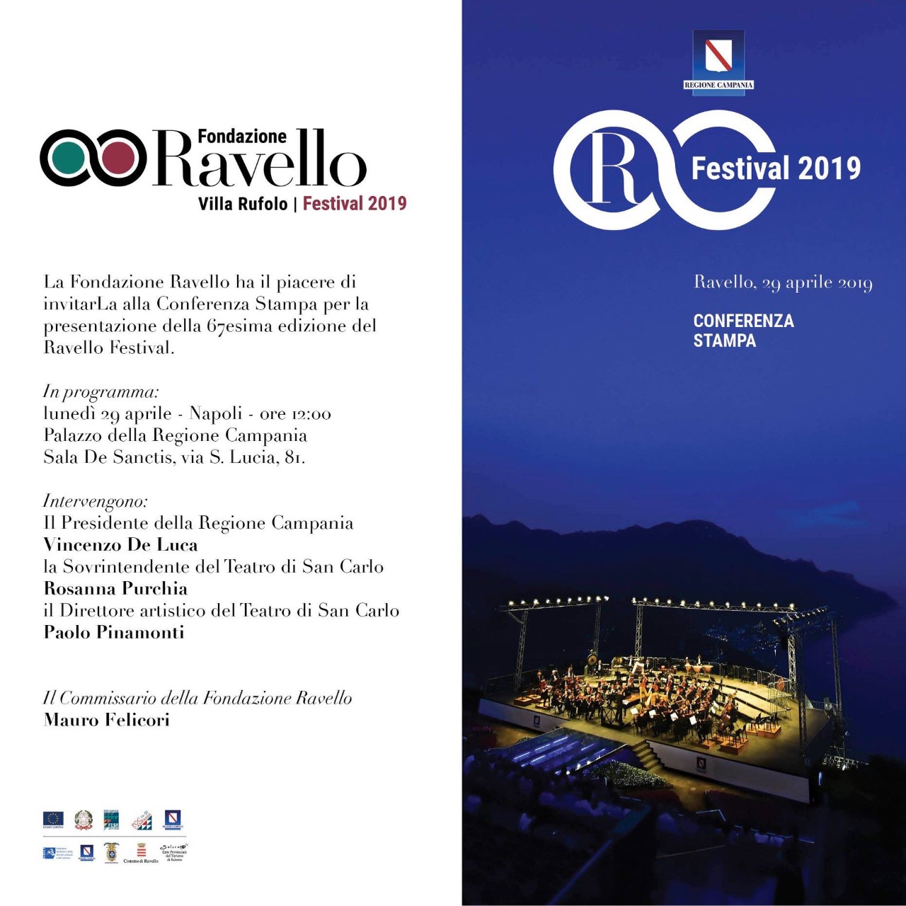 “La Regione Campania continua a sostenere con convinzione il Ravello Festival che quest’anno si avvale di due preziose collaborazioni, quella del Teatro di San Carlo di Napoli e quella del Teatro Verdi di Salerno. Significa mettere a sistema competenze, programmazione, expertise. Lavoriamo per promuovere e far crescere la Campania”, ha sottolineato il governatore della Campania, Vincenzo De Luca.