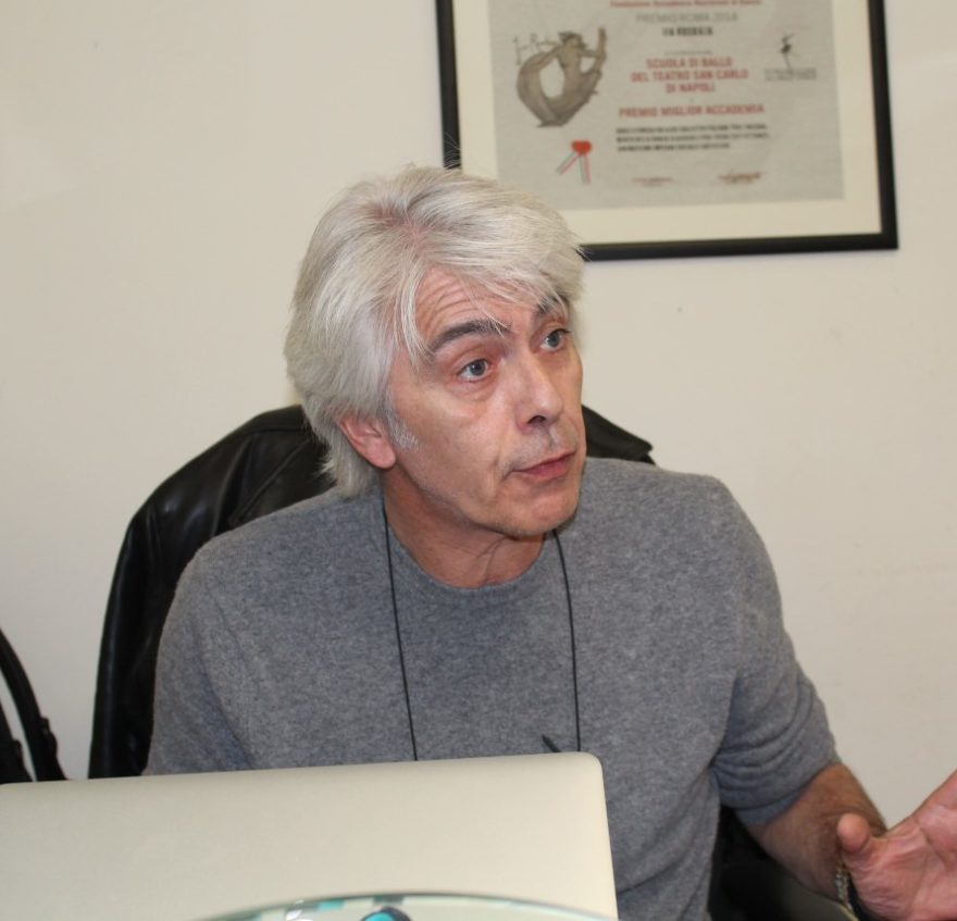 Nonostante la folta agenda di appuntamenti, il Maestro Fournial, ha trovato il tempo per noi, e nella breve attesa fuori al suo ufficio al 5 piano del Teatro San Carlo, ci imbattiamo in piccoli ed eleganti allievi in calzamaglie che ci salutano con una grazia ed eleganza di altri tempi; in quei corridoi respiri musica classica, mista alla voce dell’insegnante che batte il tempo, le regole affisse in bacheca, i doveri di ognuno deve osservare in quella che dall’Unesco è definita la “Prima scuola in Italia e la più antica d’Europa.”