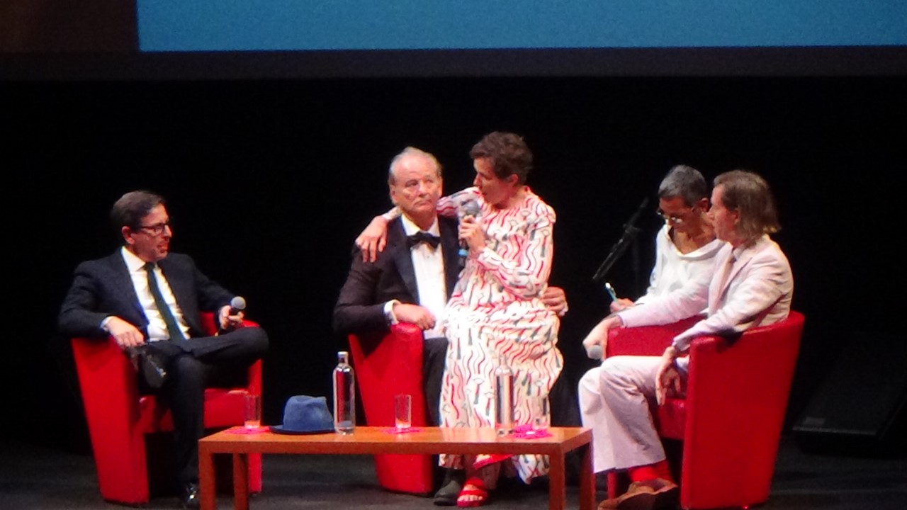 Un incontro che pareva quasi, e con Bill non può essere diversamente, uno show. Con una traduzione che non partiva a dovere per il pubblico presente, non si sa quanto voluto o forse magari era una sorta di sketch preconfezionato, e con le clip dei suoi lungometraggi. Da Tootsie a Ghostbusters, da Ricomincio da capo a Lost In Traslate e tanti altri. Citarli tutti sarebbe impossibile. Le clip cinematografiche hanno fatto da sfondo anche per dei complimenti effettuati da alcuni colleghi di Bill, quasi in sottoforma di auguri di buon compleanno. A sorpresa una piacevole incursione dell’attrice Frances Mcdormand la quale, una volta salita sul palco, si è seduta sulle ginocchia di Murray.