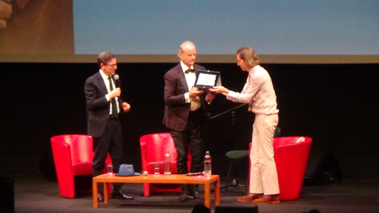 Anche a Bill Murray bisogna conferirgli questo merito che sa di premio. Proprio come quello che ha ricevuto questa sera, dalle mani del suo regista Wes Anderson, durante l’incontro con il pubblico e con l’intera sala Sinopoli piena e ed impaziente di vedere l’attore statunitense.