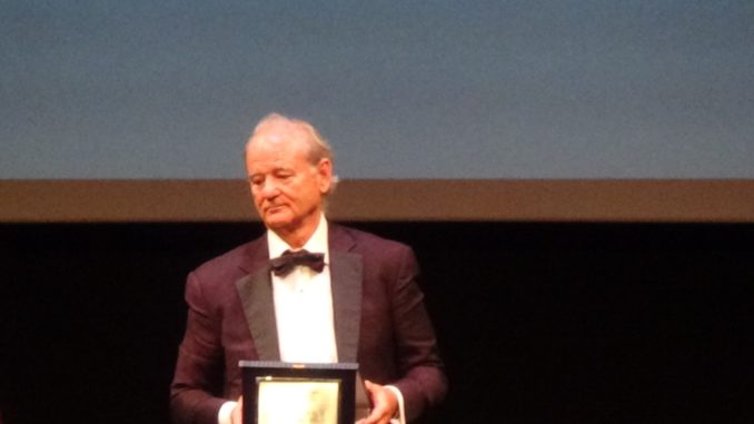 Ma la giornata pareva esser iniziata male per il ‘Dottor Venkman’. Svegliatosi non in tempo per la conferenza stampa programmata all’ora di pranzo; si rifà alla grande sul palco con il suo modo di essere asettico, senza emozioni ma con battute esilaranti: come quella in cui saluta uno del pubblico che sta per lasciare la sala prima della fine e lui, dopo diverse lamentele da parte di altri per la mancata traduzione immediata in alcuni dialoghi tra lui, Wes Anderson ed Antonio Monda, dice: ‘le manderemo la traduzione a casa’.