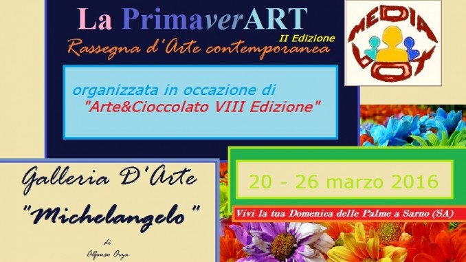 Torna, dopo il successo dello scorso anno, la II Edizione della Rassegna d’Arte contemporanea “La PrimaverART“, organizzata dall’Ass. culturale “Mediavox”, in occasione della Manifestazione più attesa dell’anno: “Arte&Cioccolato“, che si terrà la Domenica delle Palme mattina, giunta già all’ottava Edizione e frutto della collaborazione tra la Pro Loco Sanro e la Mediavox.